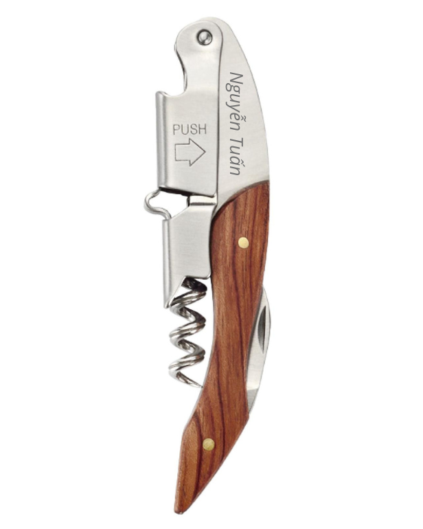 Khui rượu vang đa năng cao cấp, bằng thép không gỉ có ốp gỗ. Khui đi kèm hộp da thật rất sang trọng.